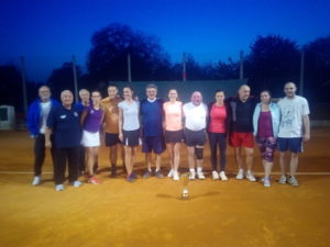 Danas je bilo jako živo na teniskim terenima. Ohrabreni mukotrpnim treninzima dva put tjedno tijekom cijele godine, naša sekcija nazvana Željezni kuk predvođena kapetanom Joškom Smilovićem, izbornikom Slavkom Markačom, glavnim sponzorom Brankom Mišićom bacila je rukavicu izazova klupskoj najuspješnijoj ekipi – Ekipi Žena TK Prelog.