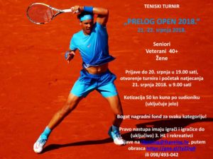 Poštovani tenisači i tenisačice, pozivamo vas na prvi turnir u singlu, “Prelog Open 2018.” koji će se održati 21.-22.7.2018. godine!